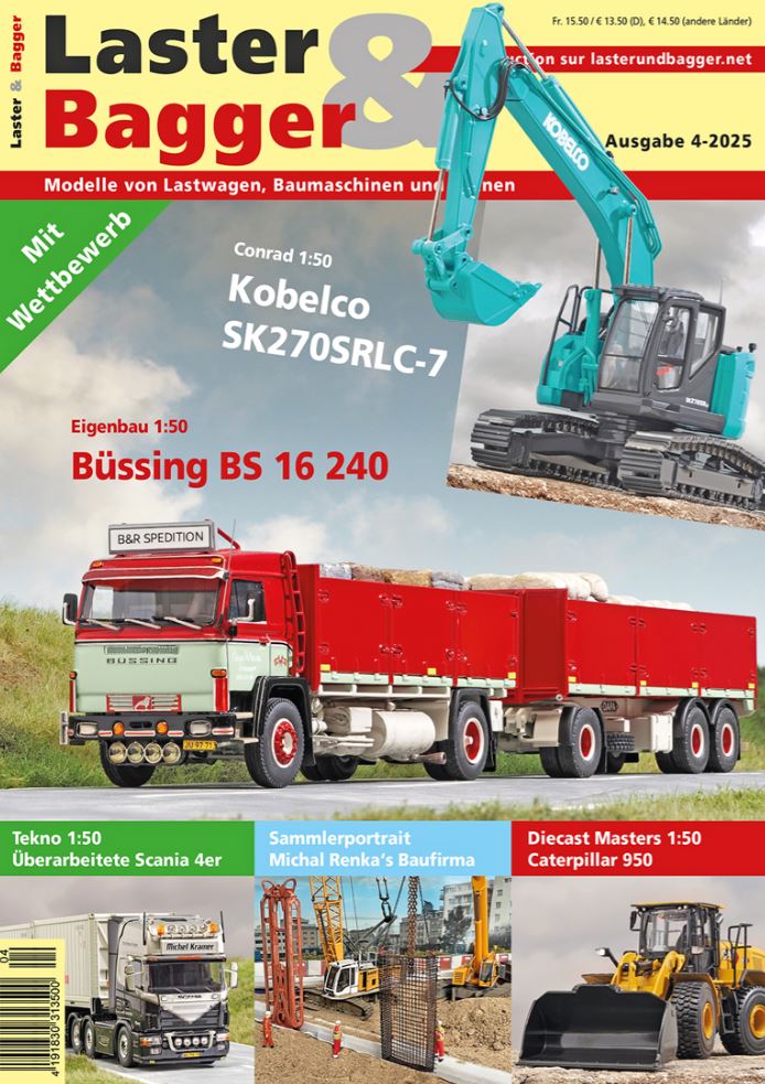 Bagger: Sammlerportrait – Michal Renka, Kobelco SK270SRLC-7 von Conrad, Caterpillar 950 von Diecast Masters, Vögele Super 1800-5 X /1803-5 X von NZG, Geschichte – Kramer 312 SL ,Kramer 312 SL von Universal Hobbies, Liebherr R 9150 «Andru Mining» von WSI, Sennebogen 683E von Ros.